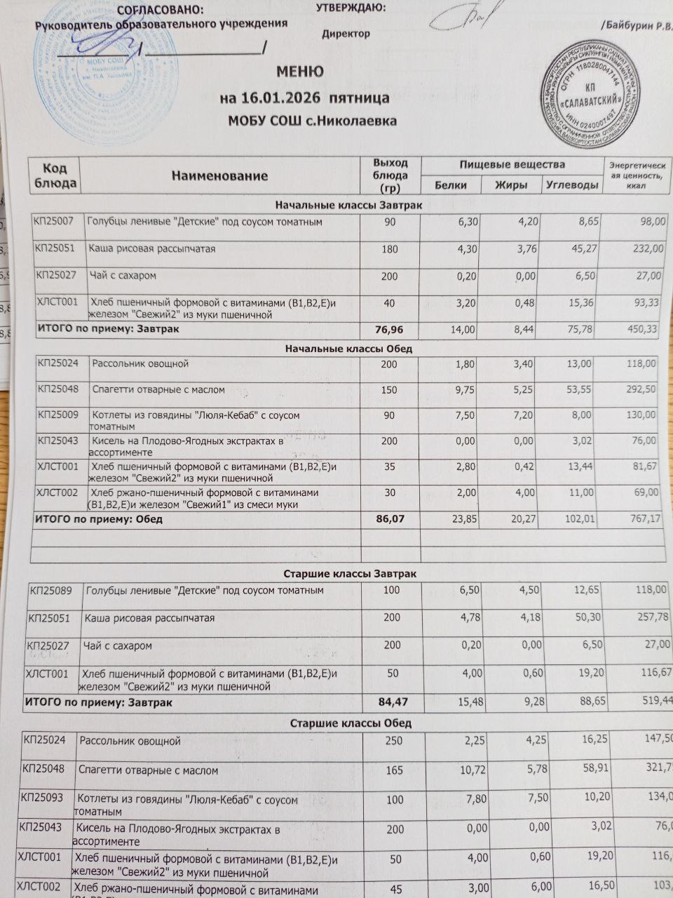 Ежедневное меню дошкольной группы МОБУ СОШ с.Николаевка им.П.А. Ушакова