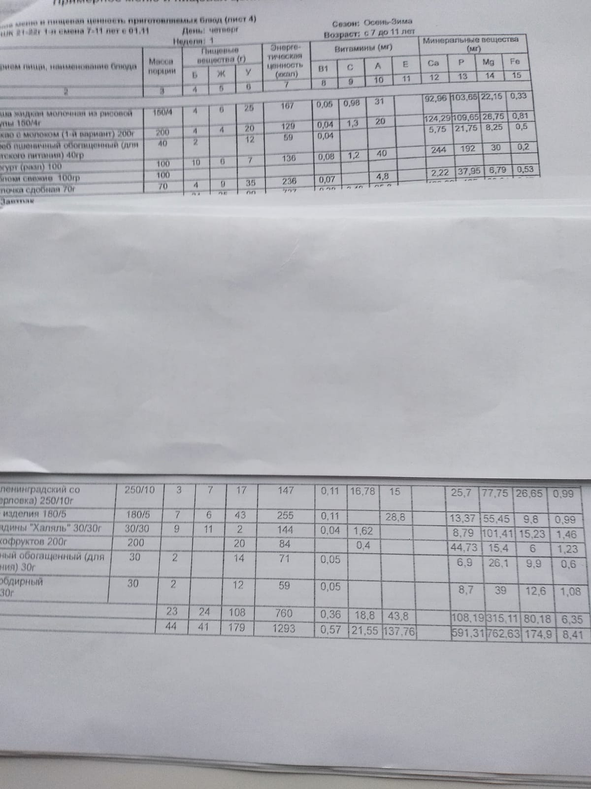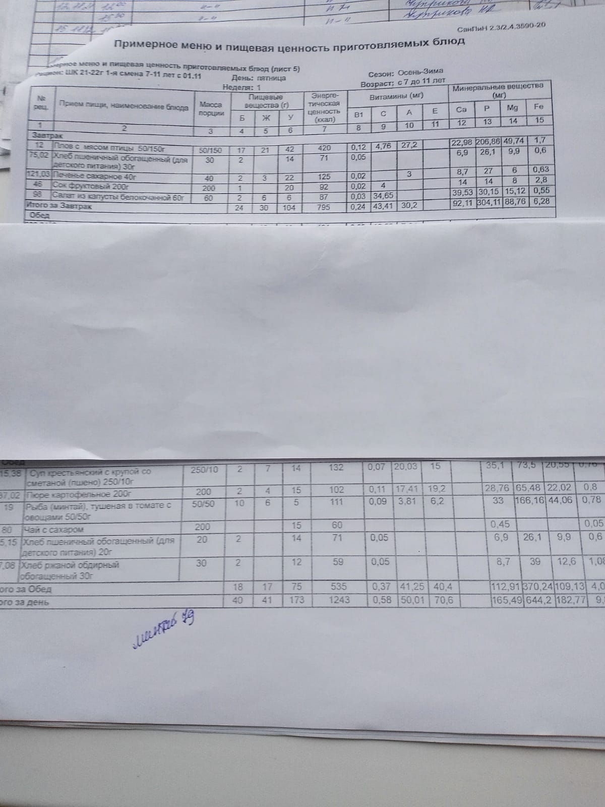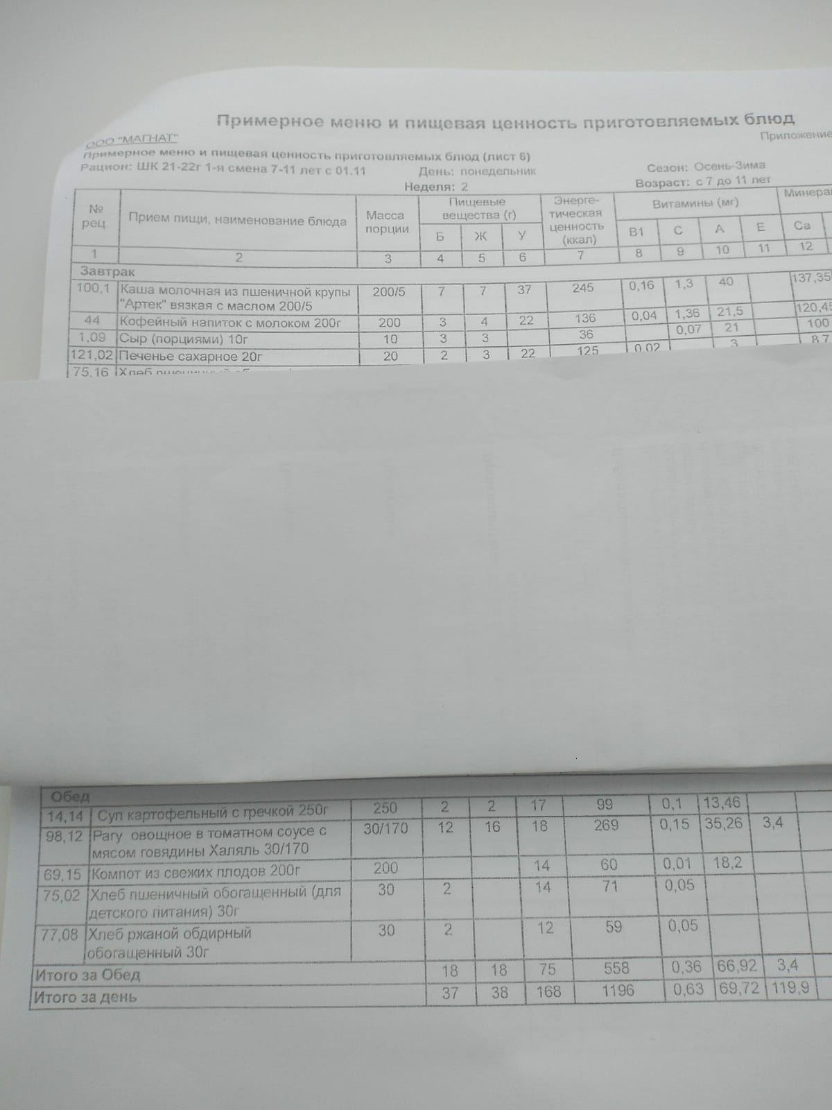 Ежедневное меню дошкольной группы филиал д.Преображеновка