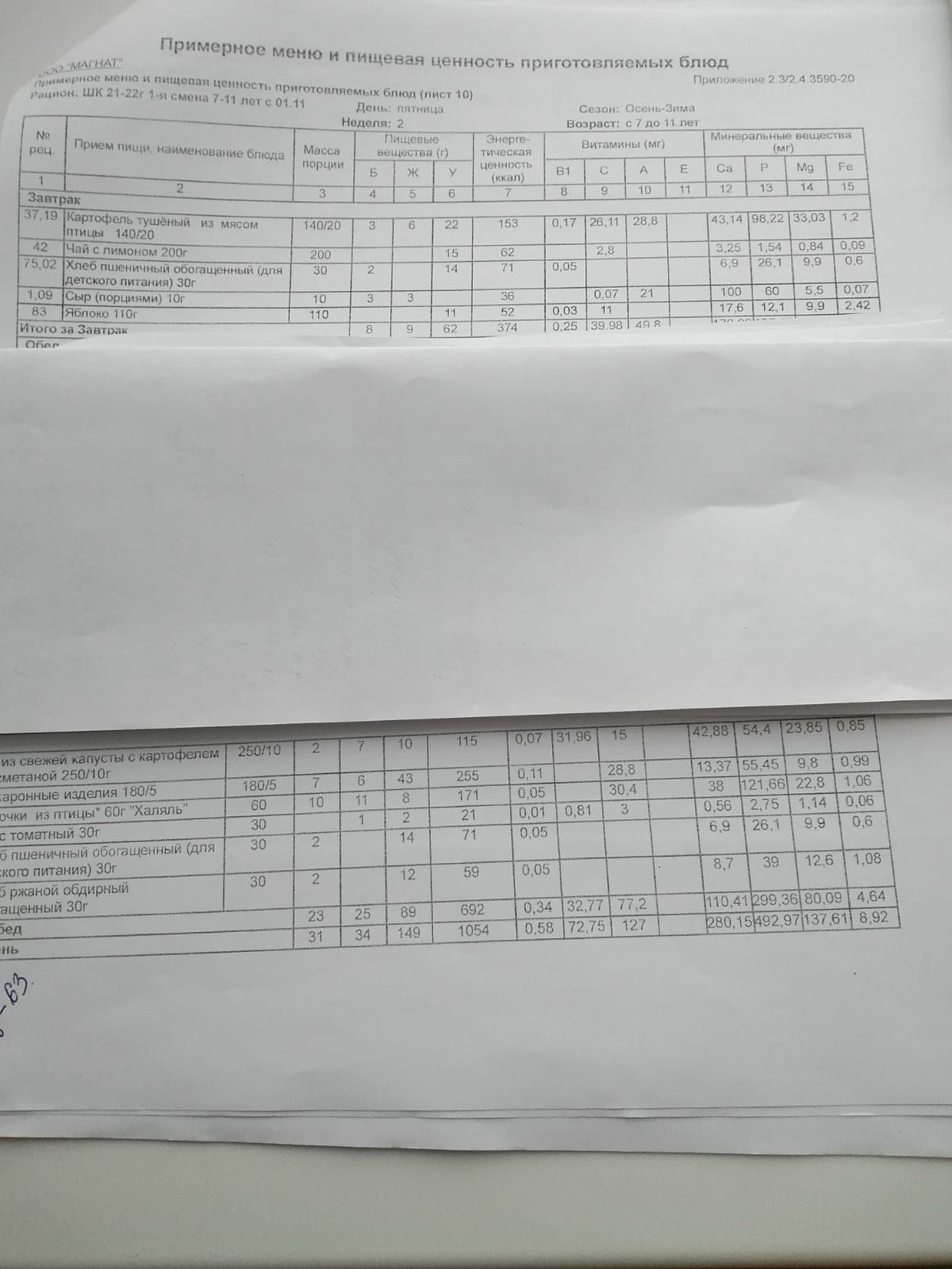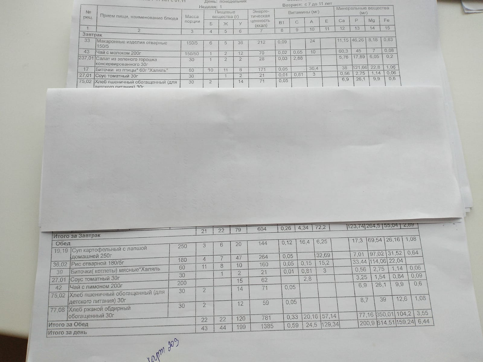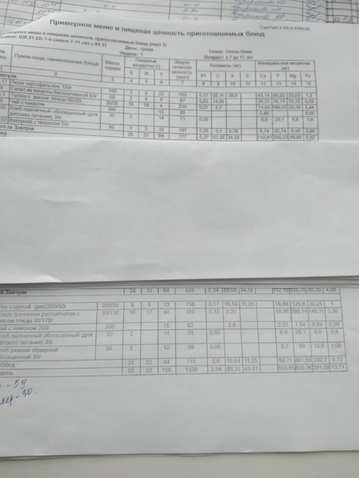 Ежедневное меню дошкольной группы филиал д.Преображеновка