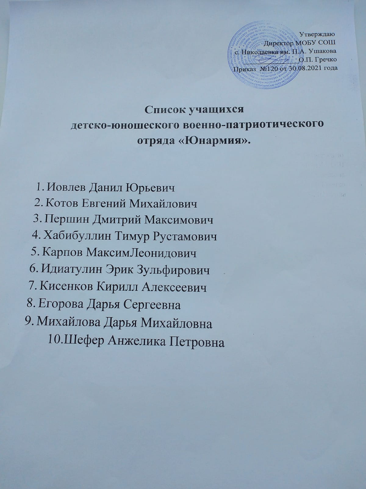 Список учащихся детско-юношеского военно-патриотического отряда "Юнармия"